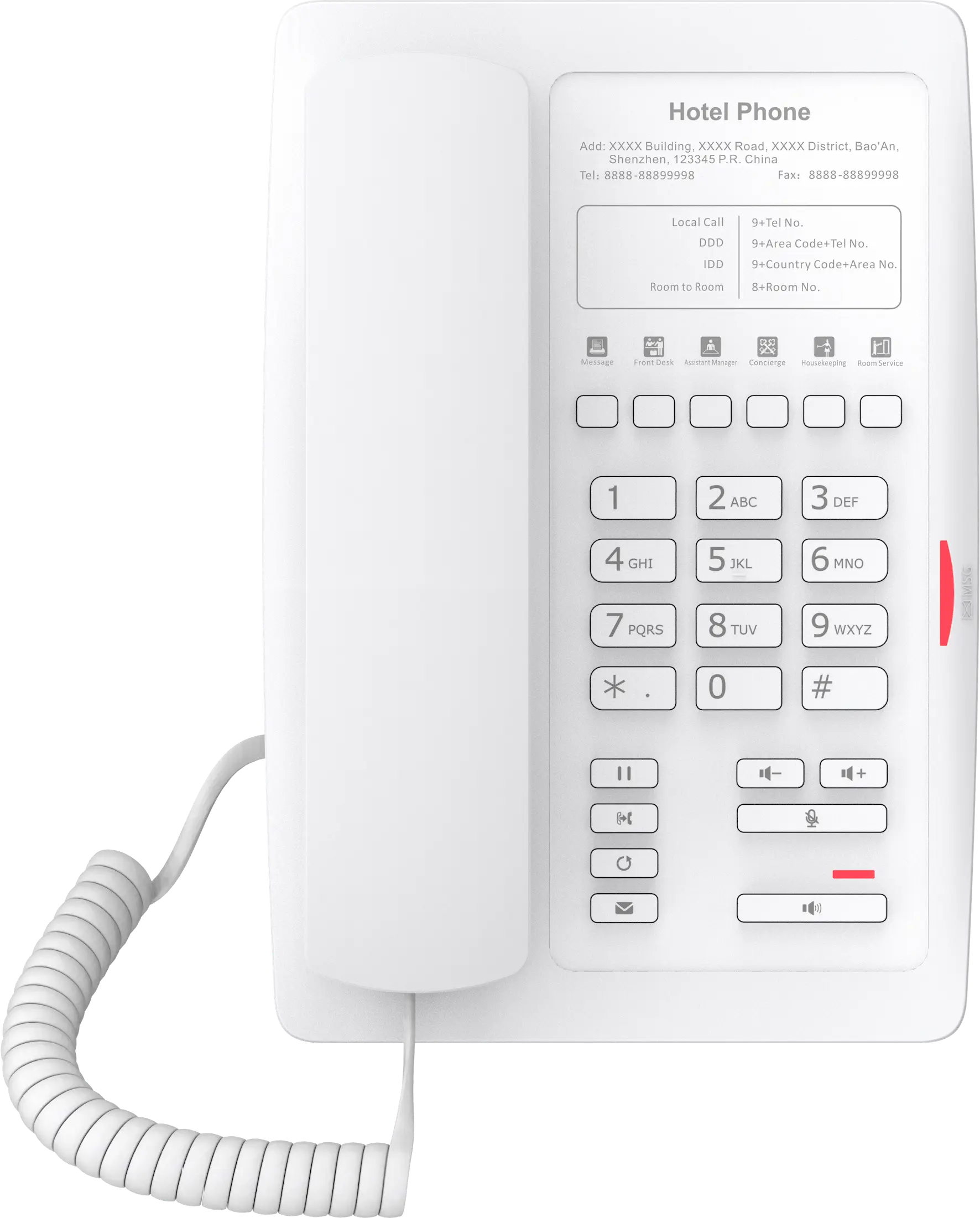 Fanvil H3 Basic Hotel IP Phone White | Single-Line, PoE, 6 DSS Keys